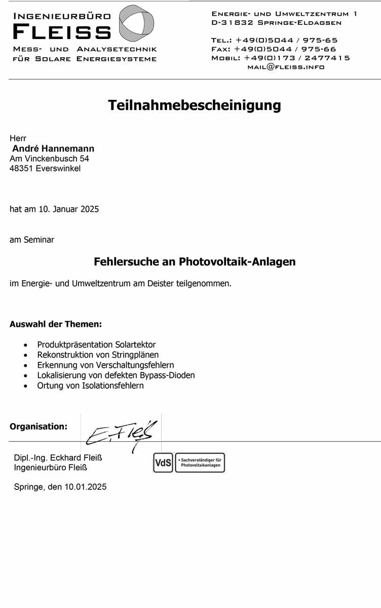 Meine Referenzen zeigen eindrucksvoll, wie Photovoltaik nachhaltig und effizient eingesetzt werden kann. Jedes Projekt ist ein Beweis für mein Engagement und meine Kompetenz, maßgeschneiderte Lösungen zu bieten, die den Energiebedarf meiner Kunden optimal decken.